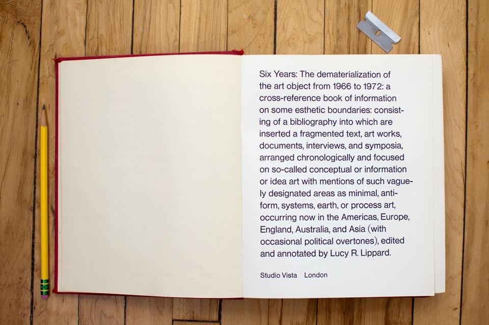 Chronologically documenting books, exhibitions, and individual works, the original Six Years was methodological in its format — with citations of exhibitions, publications and events in bold type, excerpts from texts in roman, and the author's commentary in italic — and idiosyncratic in manner, with a knowingly arbitrary selection of works and events and ruminative annotations. Lippard's approach to the commentary was both unusually generous and playfully argumentative, so despite the appearance of the apparently rigorous structure of the chronological bibliography, the book reads much more loosely: of the recondite theoretical publications of the conceptual art group Art-Language, she wrote "I don't understand a good deal of what is said… but I admire the investigatory energies. In the land of Quine and Rroses inhabited by A-L, 'direct experience' doesn't exist until it has been made indirect".