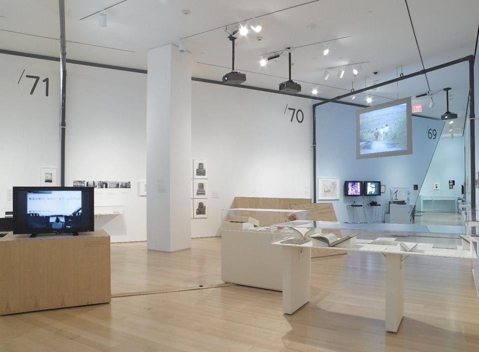 The nature of our usual access to these works today — dematerialized again into digital representations of objects that are themselves secondary to concepts — is sufficiently strange to give their assemblage here a certain material, as well as conceptual, heft