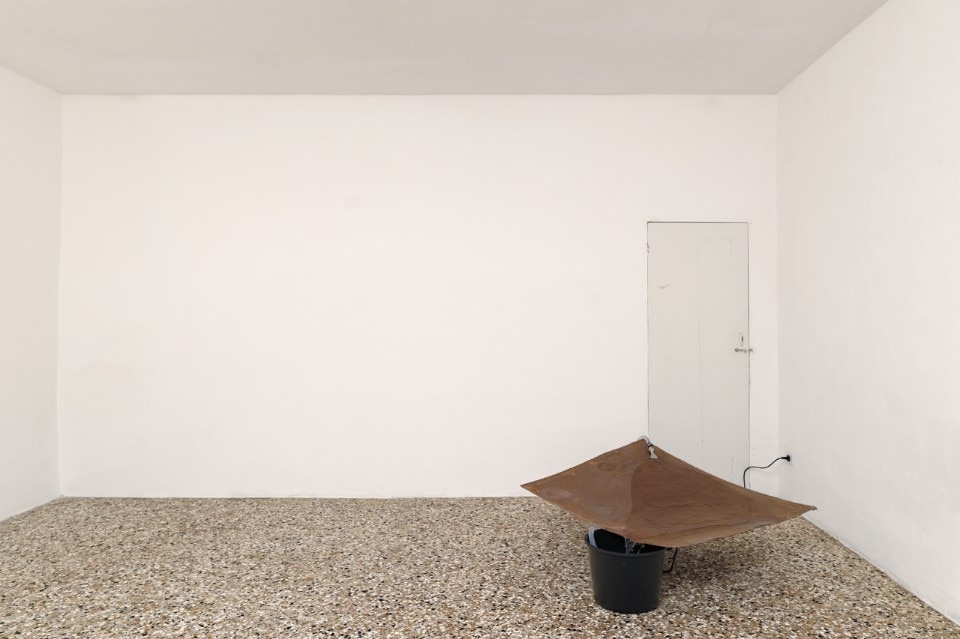 In Venice, it was hung up and unfurled once again in a single action for The Parting Discourse at the Teatro Goldoni, a stone’s throw from the Pavilion. Folded up again, it lies on the undulating floor of Palazzo Malipiero, revealing a portion of printed sea and leaving the door open to the reading of another story.