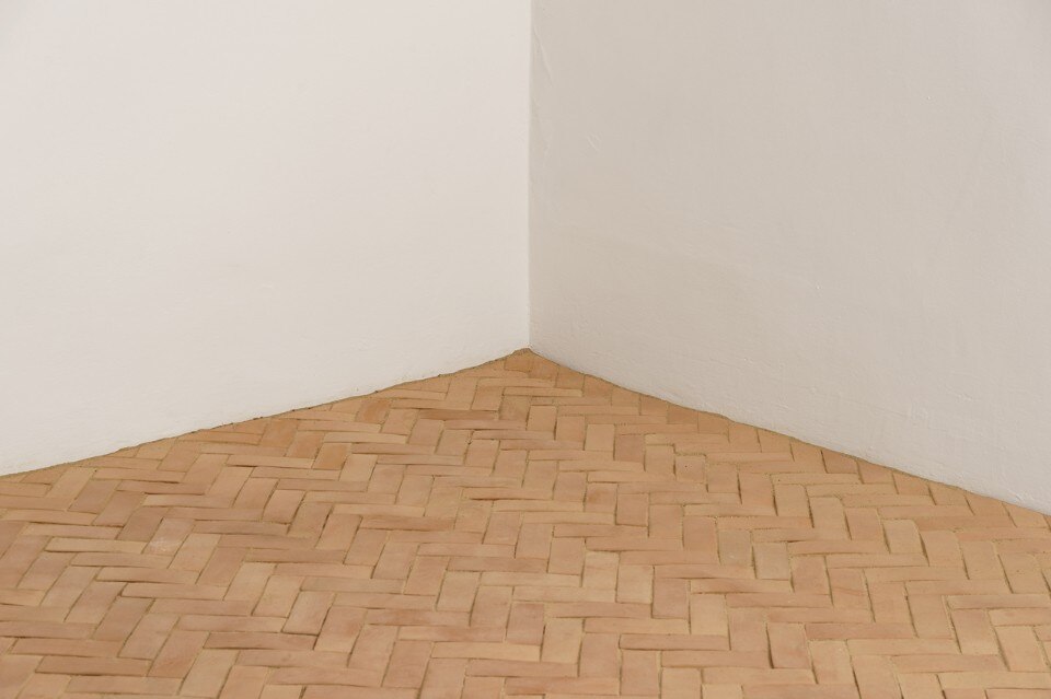 The route developed by Christodoulos centres on a generally worldly and material vision. The recomposed floors, the earth, the shoes (Untitled, 2015), the real rolled-up “red carpet” (Operation Serenade, 2012) and the theatre backdrop. A recurrent motif that has accompanied the artist’s work since 2007, the backdrop reproduces the line of the horizon in an “extra-theatrical” gesture and concept that alludes to a disenchanted perception of the theatre tradition.