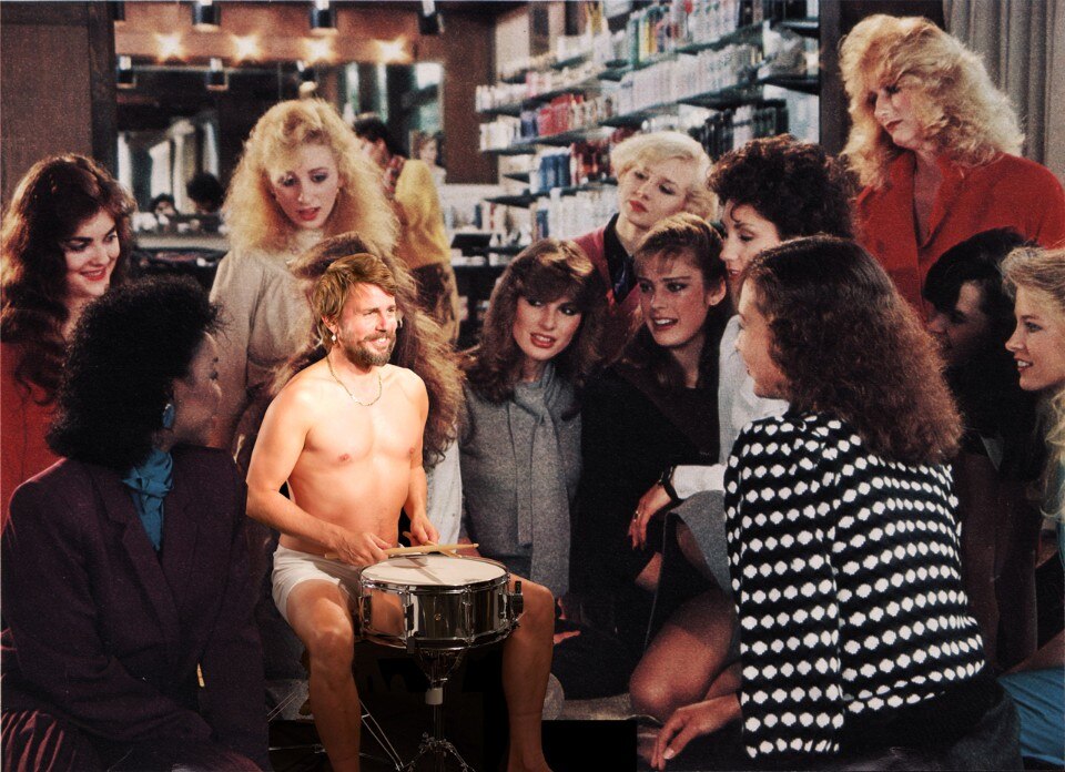 The exhibition ends at sunset, in an affected melancholy that serves to heighten the compelling desire to dance, the beauty of the night make-up and the compact black of advert backdrops, from which floating forms awaiting “Next Level Perfection” (as written on the label of the provocative Pearl drum) might emerge.