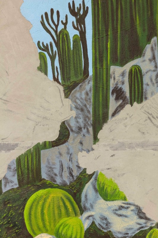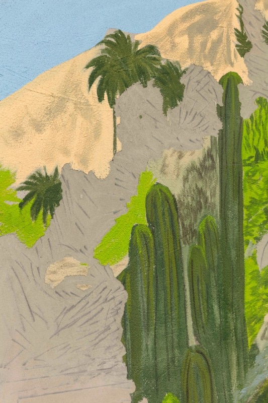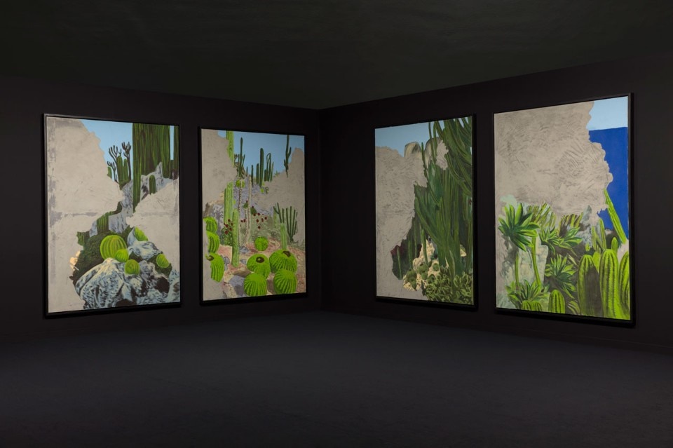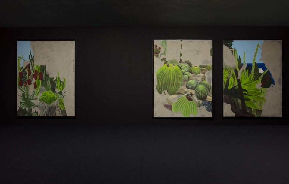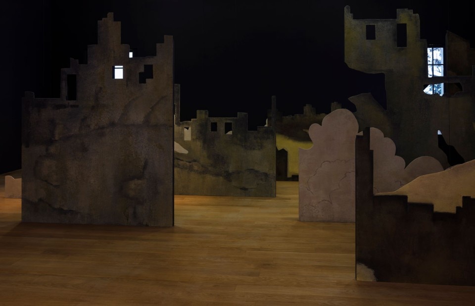 Everything is a ghost, and Latifa Echakhch proceeds thusly, giving life to skies and mountains, altering – enlarging them by hand – details of the original maquettes of ancient productions like the Moise or Pompeii that call to mind memories of her childhood spent in the wings of the theatre at Aix-les-Bains, where she arrived as a young girl from Morocco. One of art’s oldest questions is everywhere: when looking at a panorama, what makes us suddenly feel part of a décor and what, at the same time, could keep us distant in another imaginary fairy tale? In a quite impressive section of the exhibition, the recreation of the exotic garden in Monaco is the focus of a painting analysis that finds the shades of the cement that it hides, but above all we spectators slowly lose all references between make-believe recollections of past and future works (from the famous film by Philippe Parreno on automata to the postcards of Thomas Demand, from the mechanical paintings of Nick Mauss to the ballet from the golden age of Monte Carlo), in a décor that’s constantly evolving just like the ever-paradoxical territory of the Principality.