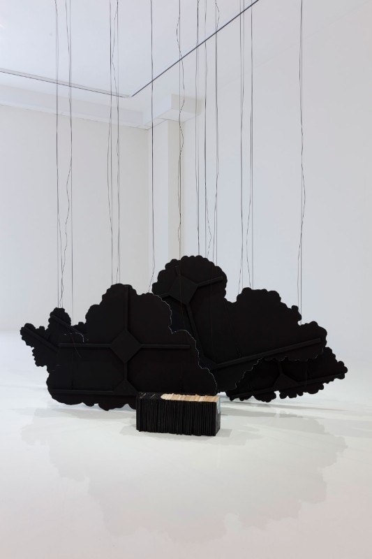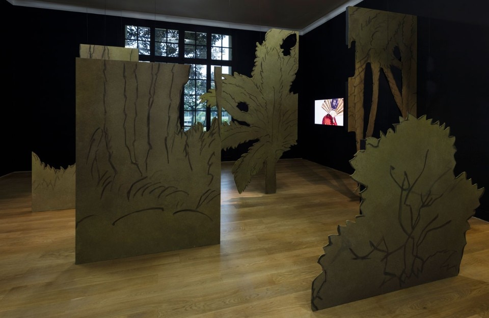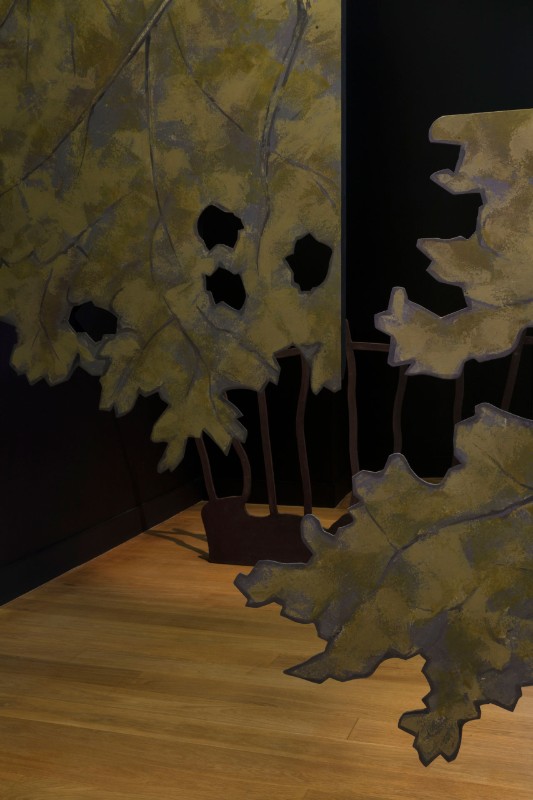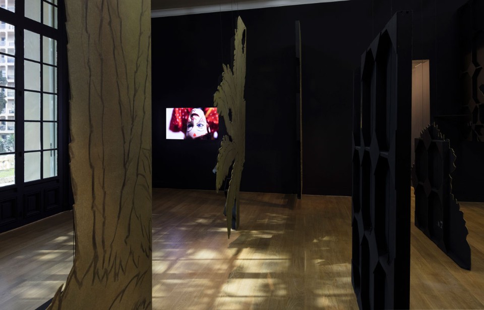 The very history of the museum we find ourselves in is here to tell us about it: in the past, a museum of mechanical automata, and in very recent years, thanks to some exhibitions curated like this one by Célia Bernasconi, one of Europe’s most interesting museums (Nick Mauss and Leon Bakst, Saadane Afif, Kasper Akhoi marked the rooms and memory, and though lost in the current installation whoever remembers them can find them). When visiting the heart of Latifa’s installations for Villa Sauber in Monaco, thanks to an extraordinary ability to evoke without having to say anything, we are led to think of a forest of signs, something besides a broken line traced in the sky.
