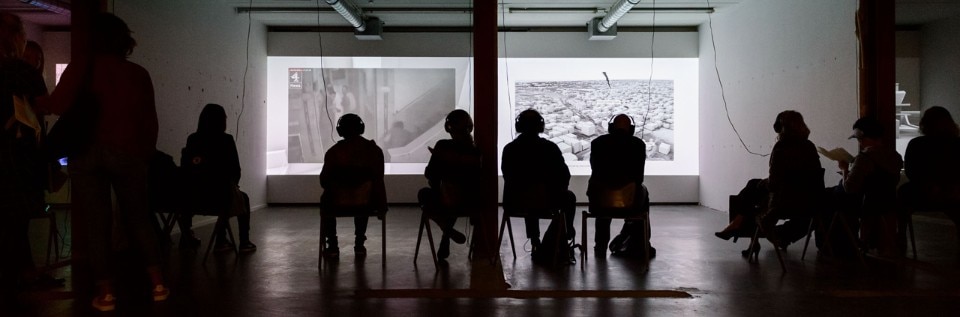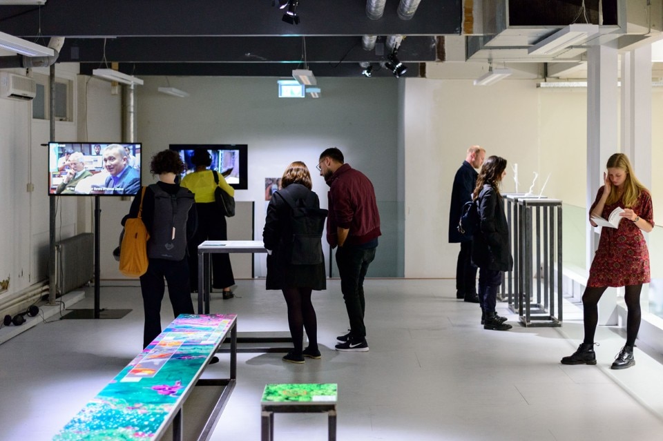 Forensic Architecture, Center for Contemporary Nature, 2016–ongoing, exhibition opening “Forensic Justice”, BAK, basis voor actuele kunst, Utrecht, 2018–2019. Photo: Tom Janssen