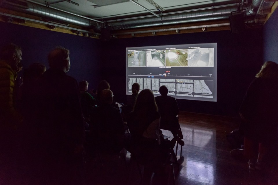 Forensic Architecture, Investigation into the Murder of Pavlos Fyssas, 2018, exhibition opening “Forensic Justice”, BAK, basis voor actuele kunst, Utrecht, 2018–2019. Photo: Tom Janssen