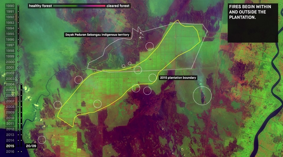 Forensic Architecture, Ecocide in Indonesia, 2016-17, (part of Center for Contemporary Nature, 2016–ongoing), in “Forensic Justice”, BAK, basis voor actuele kunst, Utrecht, 2018–2019. Courtesy Forensic Architecture