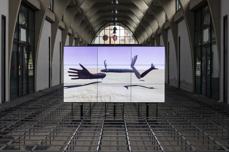 Mousset's immersive installations collapse virtual and material into an investigation on the formation of identity: HanaHana, a VR representation of the artist’s body unconscious, is a world-laboratory, sand, coloured water and stone structures, where any guest can build sheer endless architecture made of open hands, first and most antique tool for the whole mankind. The final articulation of the project has been developed involving as artist’s assistants the children currently hospitalized at Regina Margherita Hospital.