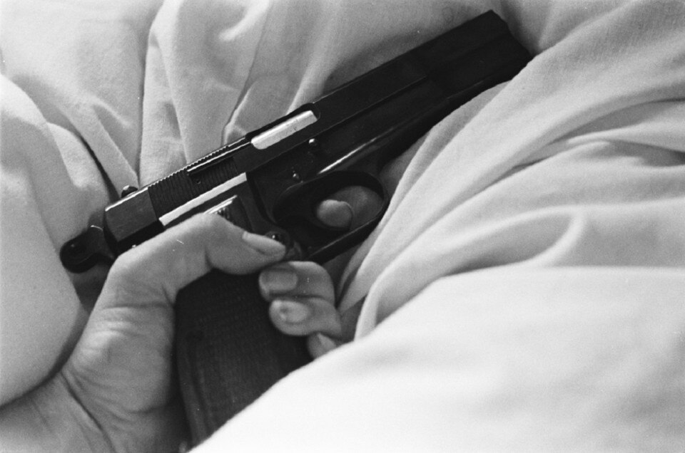 The work attempts to represent a threat of sexual violence, and resistance to it. The assailant is disarmed, with the photographs showing a physical tussle between hands clutching at the knife, and the text recalling the woman’s argument, which ends with her exiting the scene alone and uninjured.