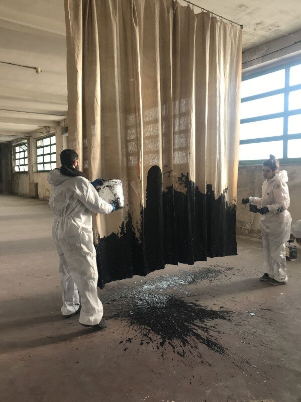 For the curator, the experience of the artist residencies is a form of professional training that gives the artists a sense of care for human beings and group relationships. Workshops organised by artists and art historians have led to the development of collective works closely tied to the industrial space, such as that curated by Marzia Migliore, Idrocarburi Policiclici Acromatici: an old canvas from the factory offices stained with dribbles of liquid tar, representing the lung diseases suffered by the women who processed the tobacco.