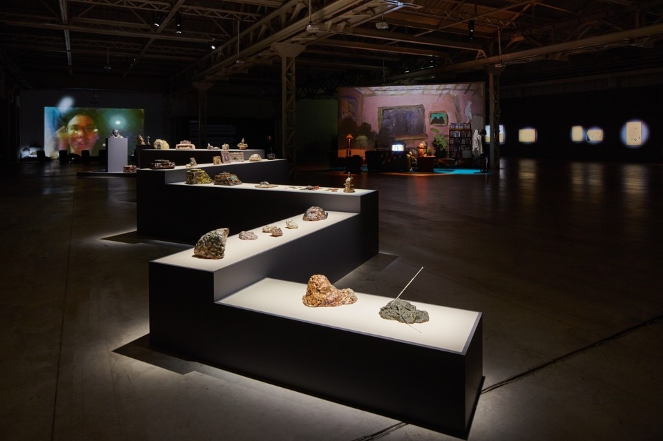 If the videos projected or showed inside a monitor make us think of a (only apparent) immateriality, however, what Trisha Baga really wants to show us is the material act of making, which implies a bodily action that is the expression of an evocative manual dexterity such as the one needed to create the beautiful polychrome ceramic sculptures that she's been making since 2015 and which are part of the Hypothetical Artifacts series at the beginning of the exhibition.