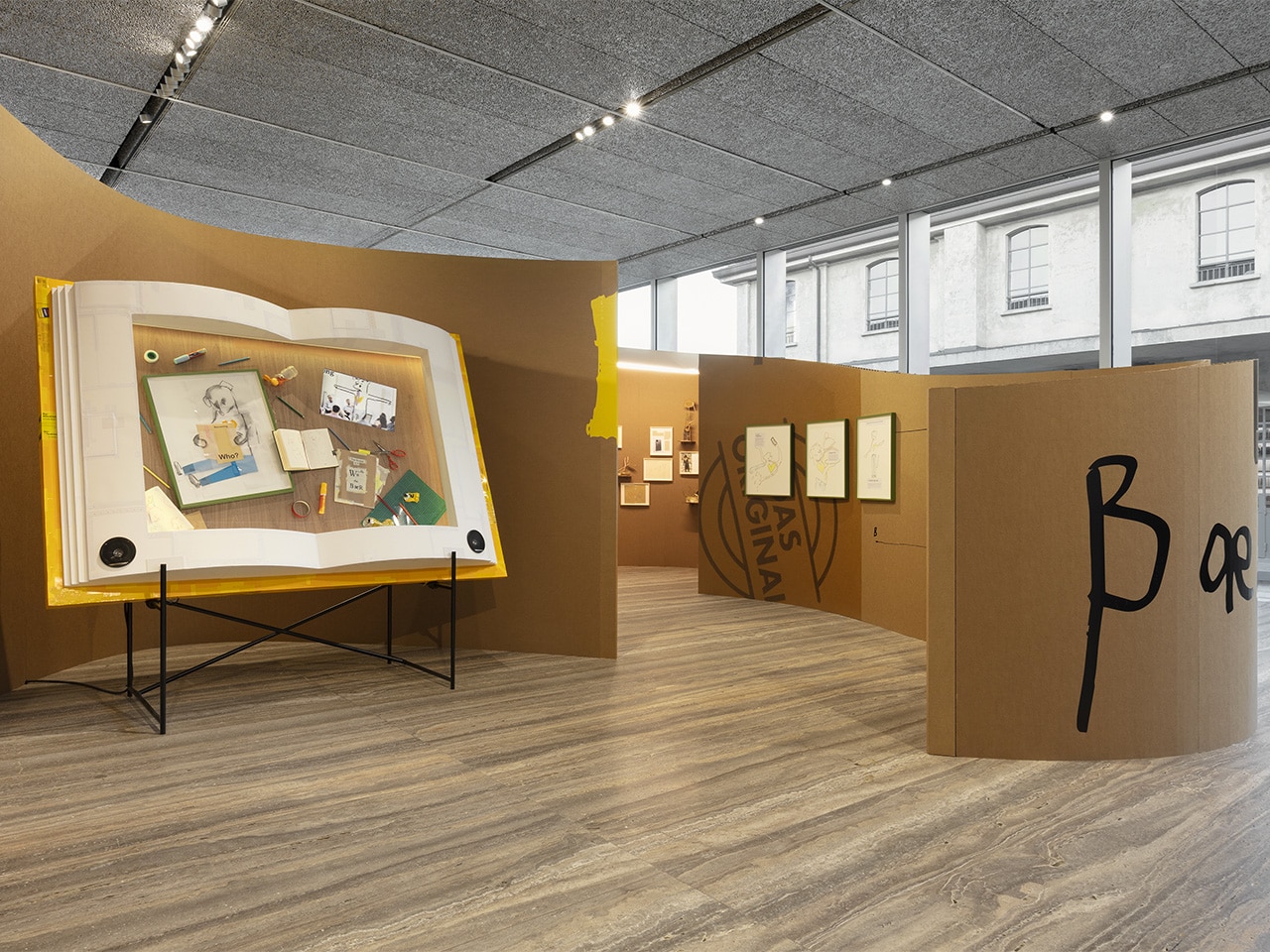 After several postponements, Simon Fujiwara’s exhibition has opened in the foundation’s podium. It is a site-specific project that unfolds in a space made of cardboard and recycled materials, also in the shape of a teddy bear. The idea was born during the first lockdown when the artist found himself alone drawing and felt the need to create a cartoon character, a childlike figure that embodied the artist’s thoughts on identity. “Who” defines from its name a question, who is he? The bear has no age, no gender identity, no personality, it is just an image.