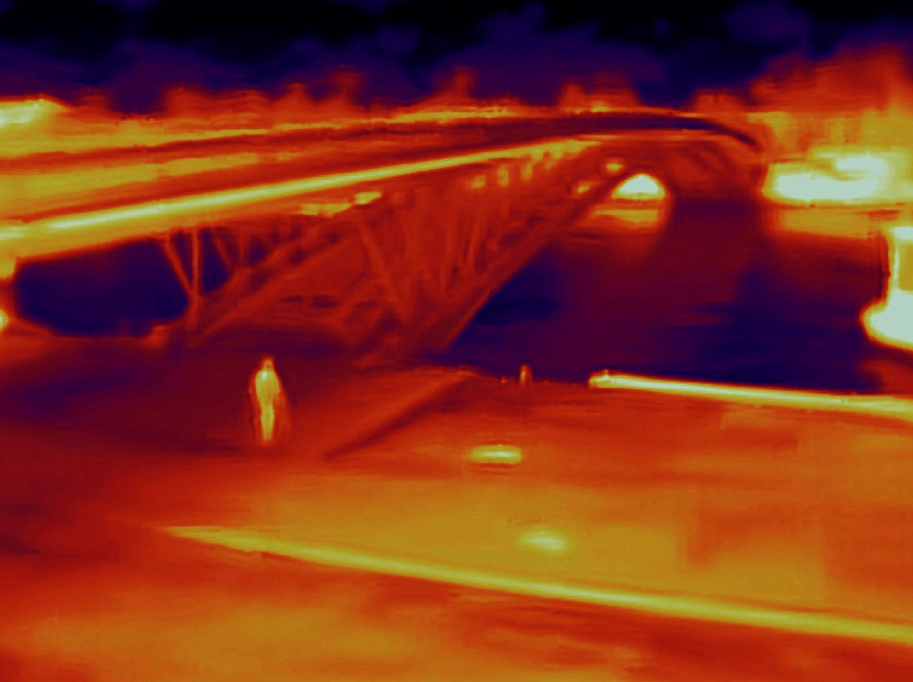 Like an “agent of infection”, he engaged in the experience of the pandemic and lockdown. The artist’s attention was drawn to the way his device captured the infrared rays emitted by the bodies he saw, varying depending on their temperature, and he became fascinated by a process that reduces places, objects and human subjects to their essence, devoid of superfluous characteristics. “Through this ambivalence between solidarity and contamination, this inevitability of social death and physiological death, I sought to capture the viral episode using a language of the senses and the resistance that transfigures bodies, with the thermal image drawing out shapes, positions, figures, curves and areas that are imperceptible to the naked eye,” says the photographer.