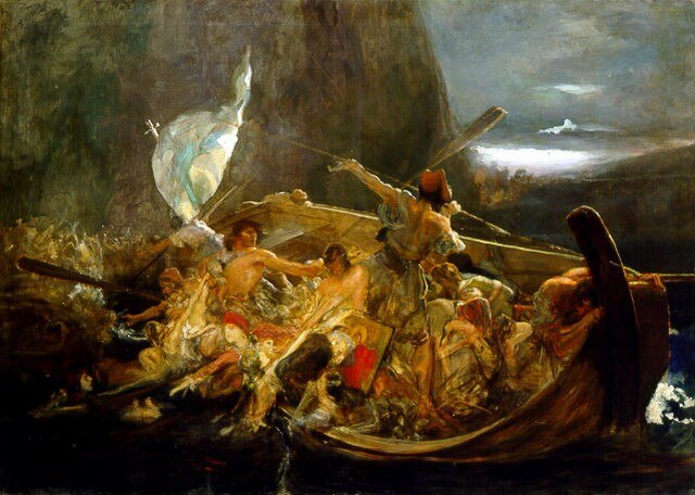 In After the Destruction of Psara by Nikolaos Gyzis, the focus shifts from the cosmic to the human scale. No longer the tragedy of an entire civilization, but the individual drama of people, fragmented families, broken lives. With an intense, empathetic realism, Gyzis shows us the survivors of the catastrophe, overwhelmed by sorrow, consumed by despair. Their lifeless bodies, their faces disfigured by grief, speak to us of unspeakable suffering, of irreparable loss. Yet, within these sorrowful figures, in those gestures of surrender, there is also an unexpected strength, a dignity that transcends the tragedy. Gyzis presents humanity in its raw vulnerability, its fragility, but also in its capacity to endure, to survive, and to find meaning even in suffering.