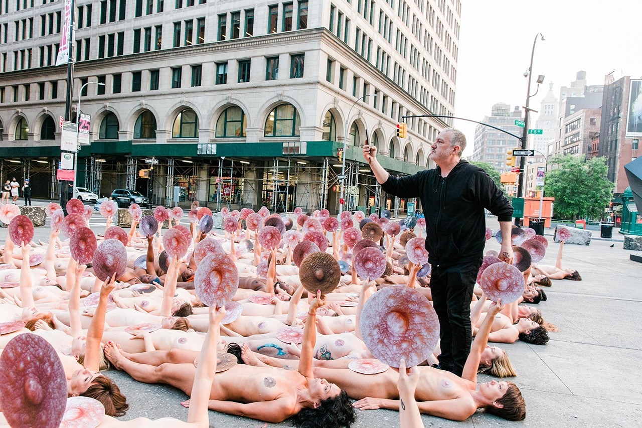 That has actually been the place where his latest perfomance took place on June 2nd, when a hundred female and male models answered his #wethenipple public call and posed for him.