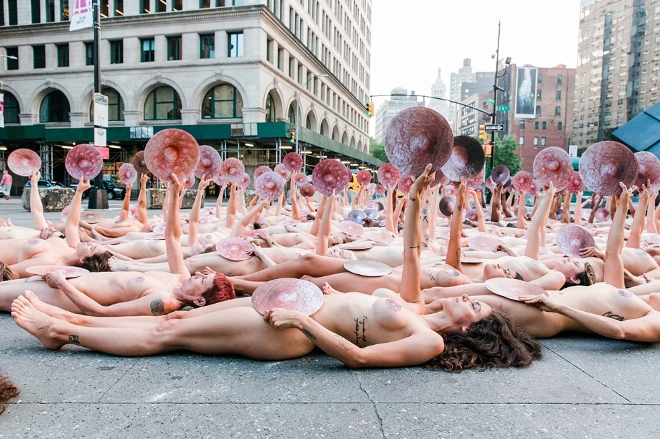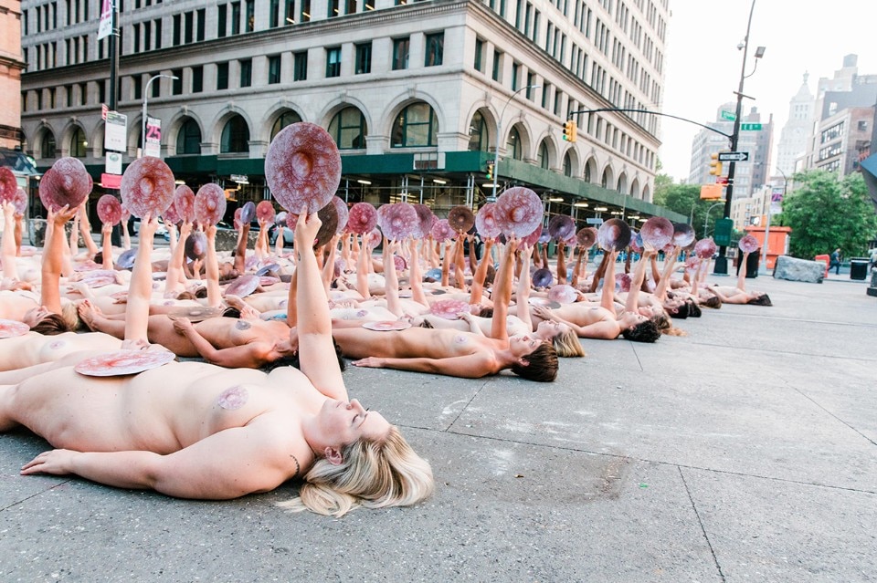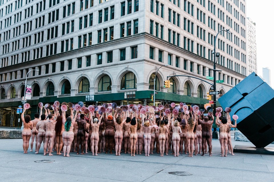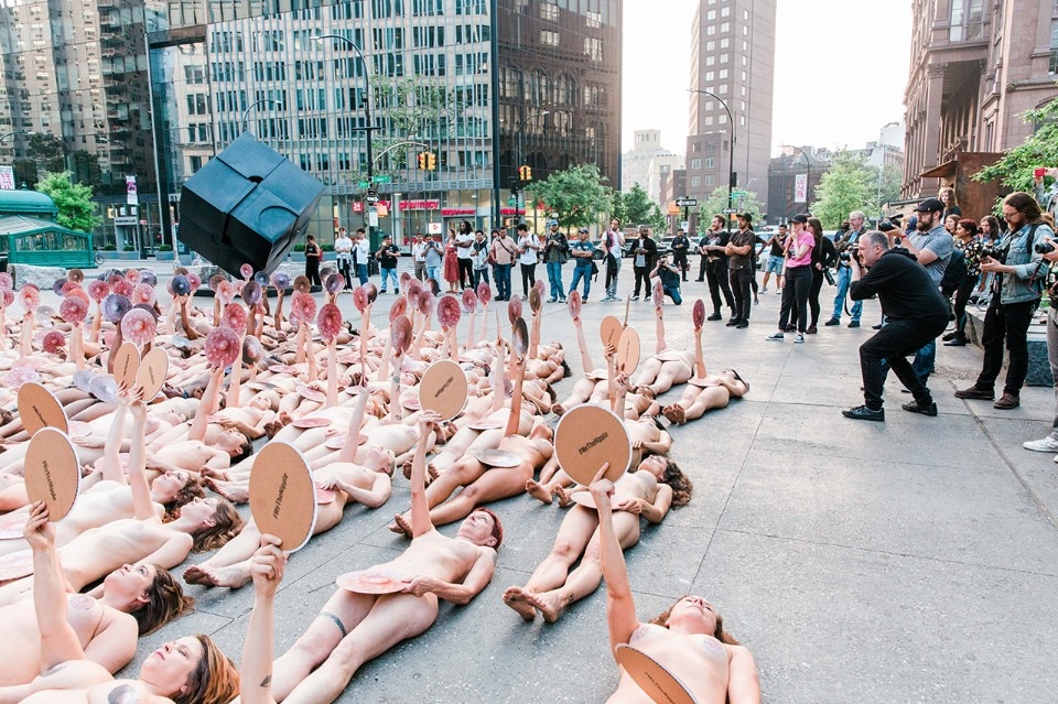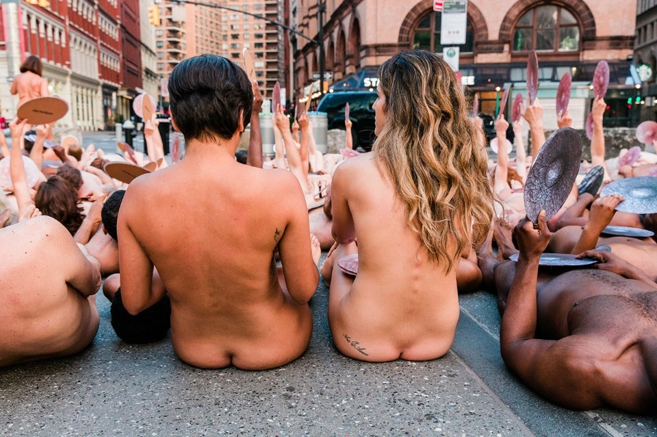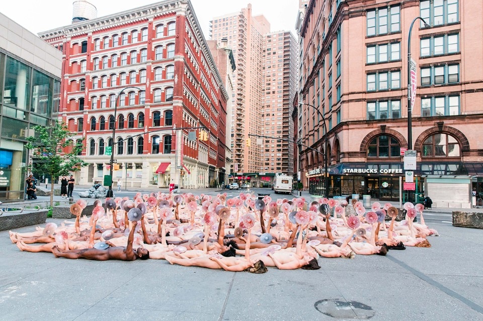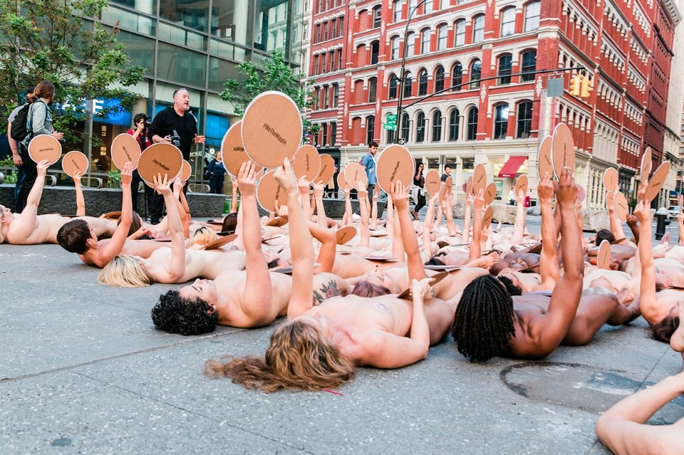 The subject is complex and insidious, but it’s always good when someone get back to hitting a nerve. After numerous artists and activists joined the cause, now it’s Spencer Tunick’s turn to peacefully occupy a stretch of that long and windy road: specifically the one before the Instagram and Facebook offices in New York.