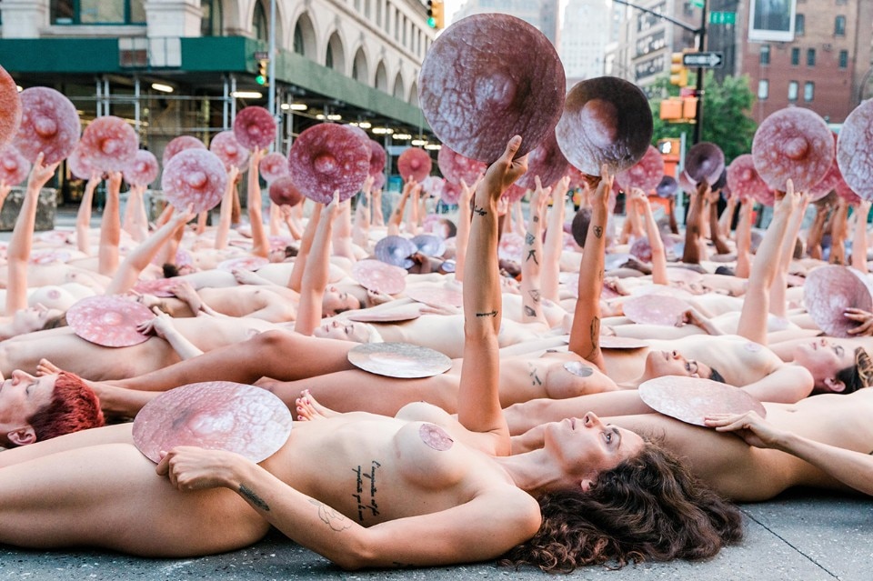 This time though, the work the american artist famous for his mass nude photo shoots (and for his issues with justice) has made headlines for, didn’t include any nudity: performers’ genitals were in fact covered with enlarged prints of male nipples with women wearing male nipples printed stickers inspired by artist Micol Hebron's #freethenipple movement, allowing the photographer to avoid both the limitations imposed by the company the protest action was targeted to. An open and ironic challenge to the algorithm that Zuckerberg & Co. have expressely engeneered in order to distinguish female from male nipples.