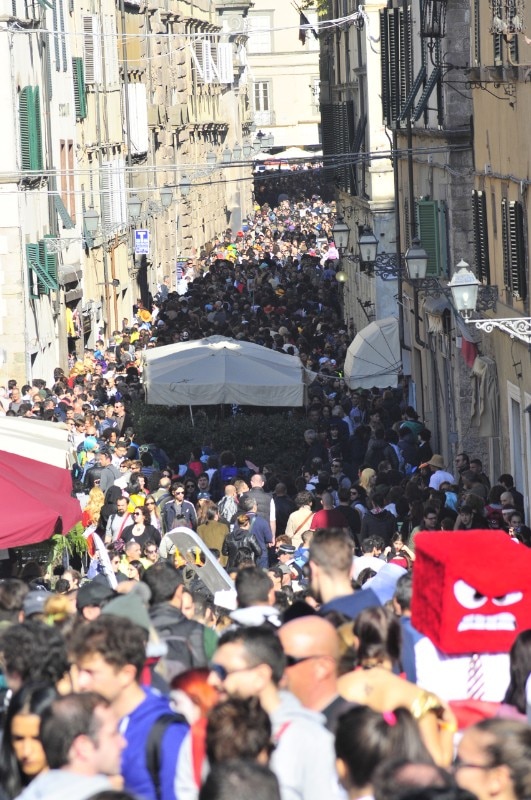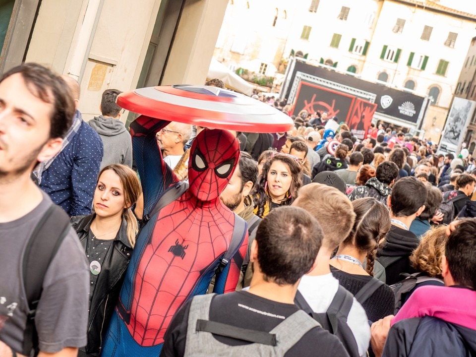 Just like the Salone del Mobile in Milan, which attracts almost 1 million people in 5 days, and the Grand Prix, which every year transforms the streets of Monte Carlo into a Formula 1 circuit and the terraces of the houses into privileged grandstands, the historic centre of Lucca gets transformed by comics fans as well. Proportionally, one could also say that Lucca Comics & Games is to Lucca as the Hajj, the annual Islamic pilgrimage, is to Mecca. Both cities, in fact, more than double their population in the days of the event: from 88,397 inhabitants to almost 900,000 people in four days (Lucca), and from 2 to 4 million in five days (Mecca).