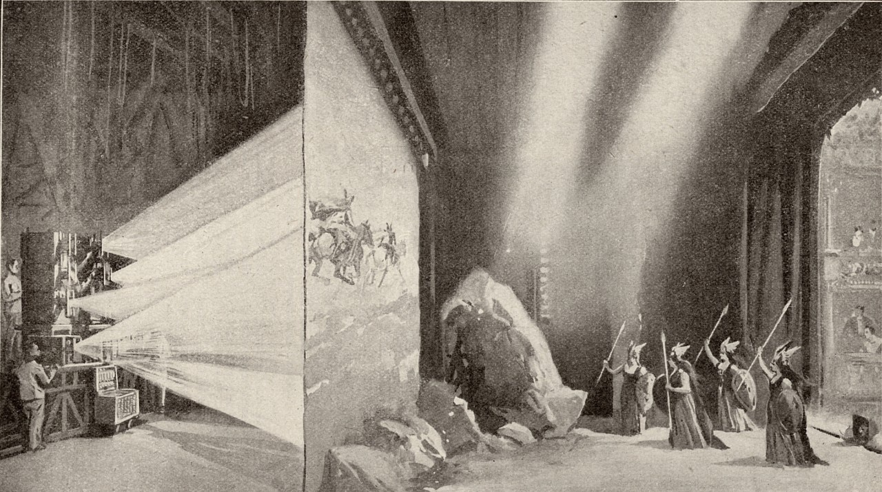 To use more modern terms, a Décor is the ancestor of special effects, with some notes of uniqueness on top. Resulted from a late-19th-century desire to recreate movement, the Décors Lumineux are a complex system of light projections coming from a hidden monster-machine, which brings the stage scenery to life, turning silent pictures and settings into actors interacting with the play.