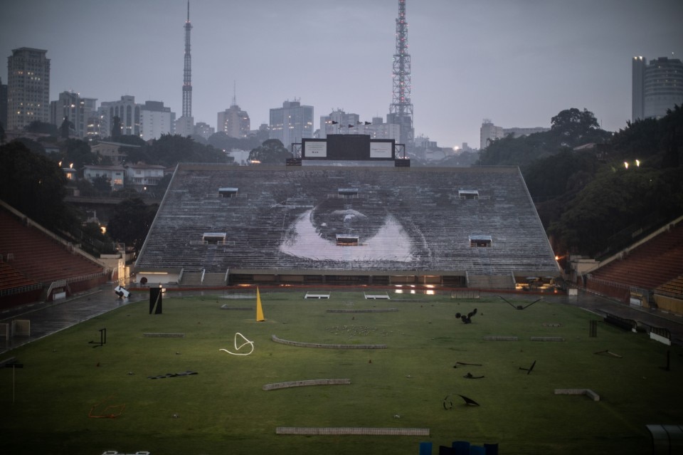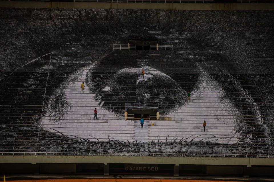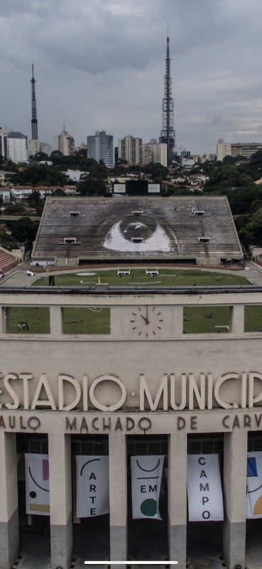 The mural was realised in collaboration with Galleria Continua and Galeria Nara Roesler. It celebrates the 80th anniversary since the inauguration of the stadium, which still represents a landmark for the inhabitants of the city. To realise the site-specific work, JR covered the historic stadium grandstand with 1480 strips of paper. The artist has depicted an eye looking upwards. Metaphorically, it is the gaze of São Paulo’s youth looking up at the sky full of hope and broken dreams. It pays tribute to the fearless yet disadvantaged Brazilian youth and their beloved football, a crucial discipline in the history of the nation.