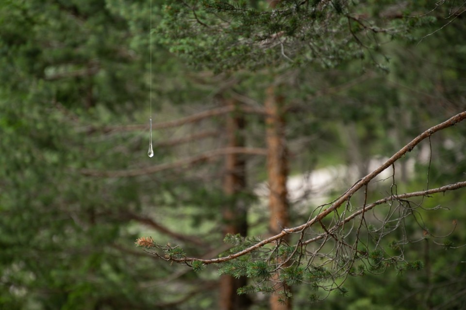 The legend of "King Laurino's Rose Garden" comes back to life in Maurizio Mercuri's installation, inspired by the phenomenon of the alpenglow: every day, at dawn and at dusk, the sun's rays colour in pink the peaks of the Dolomites. Mercuri uses glass drops as an attractive source of light, to capture and "preserve" its brightness.