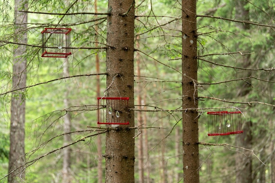 "Pupille" is a dreamlike journey, a fairy-tale experience that accompanies visitors in their rediscovery of the natural landscape of Cortina d'Ampezzo by means of a magical narrative outlining a vast heritage of fairy tales and legends linked to the history of the Dolomites. The site-specific works feature references to childhood and to the natural world; the results is an unfiltered mediation experienced through the "Pupils", point of contact between the external and internal worlds, gateway to the unconscious, and a key to access the artist's attentive subjectivity.