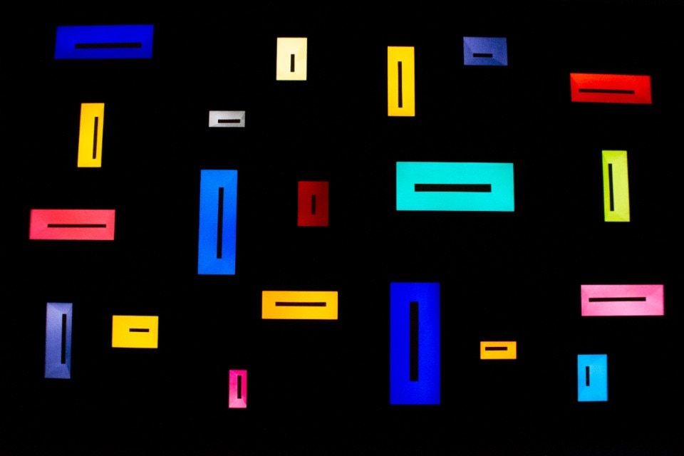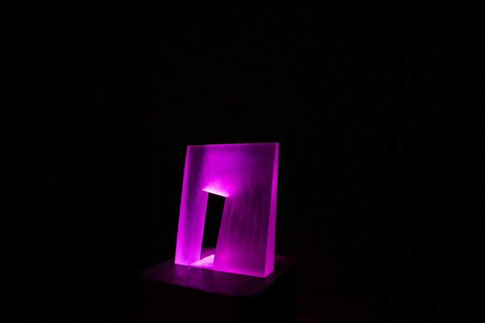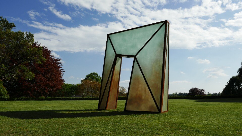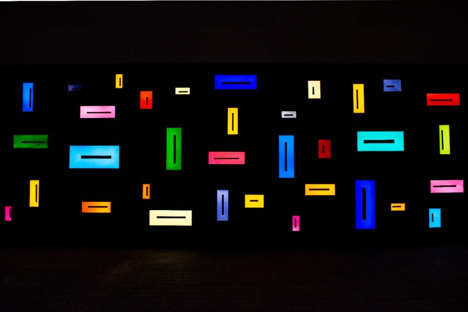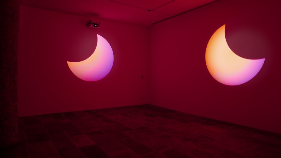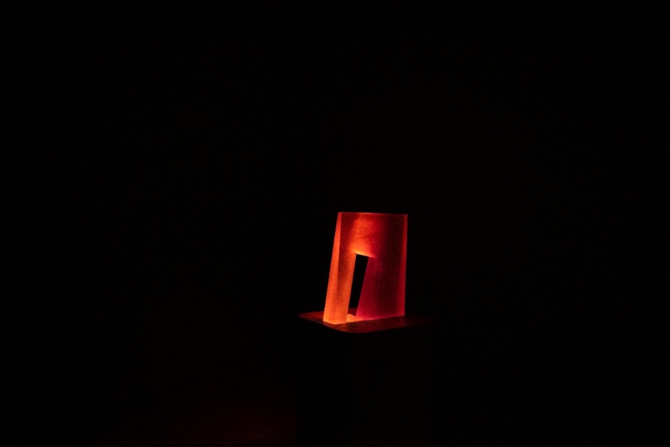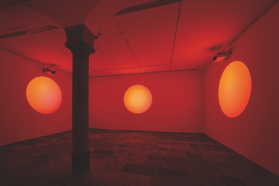 Giuseppe’s Door no.1 is dedicated to him, located inside the second carriage house, an opalescent door composed of a single piece of glass illuminated by colored lights that seem to flow from its interior, making it seem suspended in the void. Melancholia is also made of light, a projection that expands on three walls superimposing a luminous circle that slowly changes color to another opaque black: an invitation to reflect on the need to reunite with the environment, an image poised between abstraction and evocation of the sidereal nature. The archetypal landscape is inspired by Camini delle Fate, an installation composed of 34 glass panes inserted in a large black matt structure: each glass is illuminated and illuminating, through a different refractive light and color on the environment.