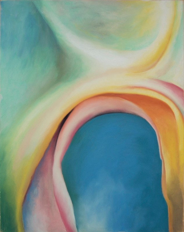 Georgia O’Keeffe. Over Blue, 1918. Pastel on paper, 28 × 22″ (71.1 × 55.9 cm). Memorial Art Gallery of the University of Rochester. Bequest of Anne G. Whitman. © 2023 Georgia O’Keeffe Museum / Artists Rights Society (ARS), New York