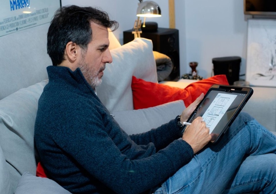 Buratti was introduced to Domus by Apple and his process is a blend of old and new. “I used to work on paper, but now I use an iPad,” he says. “I shoot reference videos on my iPhone during rehearsals, AirDrop them to the iPad, and sketch directly over the frames. It makes the process faster and more accurate.” Technology, he notes, has revolutionized storyboarding. “In Hollywood, entire departments create animatics for a film before it’s even shot. In Europe, we still tend to use storyboarding for specific sequences—action scenes, CGI-heavy shots, complex logistics.”