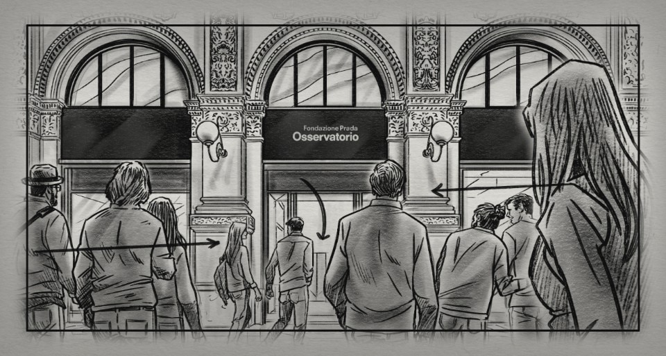 “The value of the storyboard isn’t in its aesthetics, but in the narrative and technical decisions intrinsic to the shot” says Pablo Buratti, a storyboard artist whose work has worked with such directors as Pedro Almodóvar, Terry Gilliam, and Álex de la Iglesia. We meet him at Fondazione Prada Osservatorio, where the new exhibition “A Kind of Language” sheds light on the overlooked craft of storyboarding. “Take Saul Bass’ work for the shower sequence in Psycho”, Buratti explains, “every shot, every cut, the rhythm of the scene, it’s all there in the drawings. That’s pure art.”