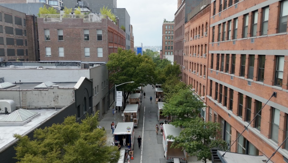 “We rented 12 trucks from 8 different locations across the NYC tri-state area, outfitted them with painted plywood walls and lighting, and provided exhibitors with a couple pieces of furniture and hand-painted gallery signage. The day before the fair we staged the trucks at 22nd Street, so exhibitors could install their booths”. To be clear, the 22nd Street is not just any street, but the heart of the New York art scene — one of the historic districts of contemporary art in the United States, where there are now over 400 galleries, including Hauser & Wirth and Dia Chelsea. And also, “a NO PARKING zone during the week”.