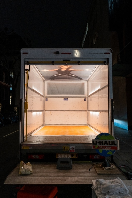 Second, mobility itself becomes an artistic strategy: “Because we are mobile, location becomes a tool for us to speak to the content of the work we are showing. We can dream with the artist not only how the show looks on the inside, but when and where it will be seen. In this way, context is our medium, and the gallery is the vessel to explore it.”