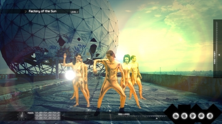Another strong thread in her research concerns the transformation of capitalism into an atmospheric condition: something not encountered head-on, but inhaled, traversed, internalized. In Liquidity, Inc. (2014), Steyerl builds a powerful metaphor between water and images/money in the digital age: waves, flows, weather forecasts, interviews, and masks merge into the sense that economy and media share the same logic of volatility. In Factory of the Sun (2015), light enters the scene as a resource to be extracted and converted into value, within a world where surveillance and mega-finance appear as videogame and choreography.