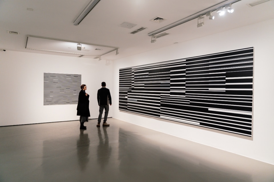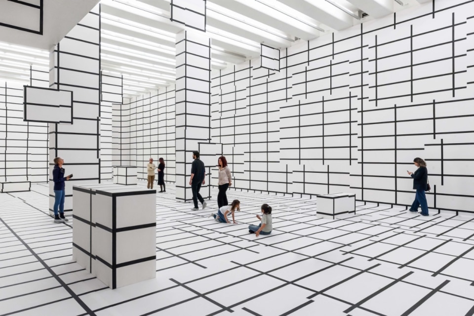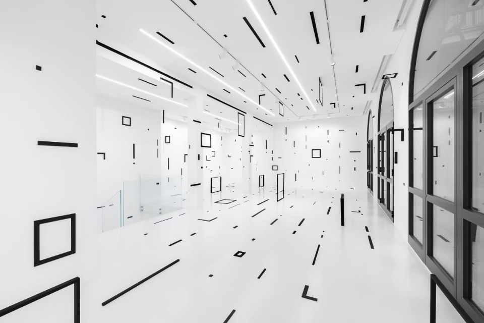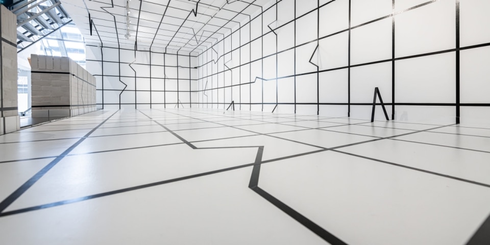 Lines that traverse space, grids that alter perception, surfaces that extend beyond the picture plane to transform entire rooms. In Esther Stocker’s work, everything appears to speak of rigor and control — a rigor that recalls minimalism as much as optical art, yet ultimately challenges their claim to absolute neutrality.