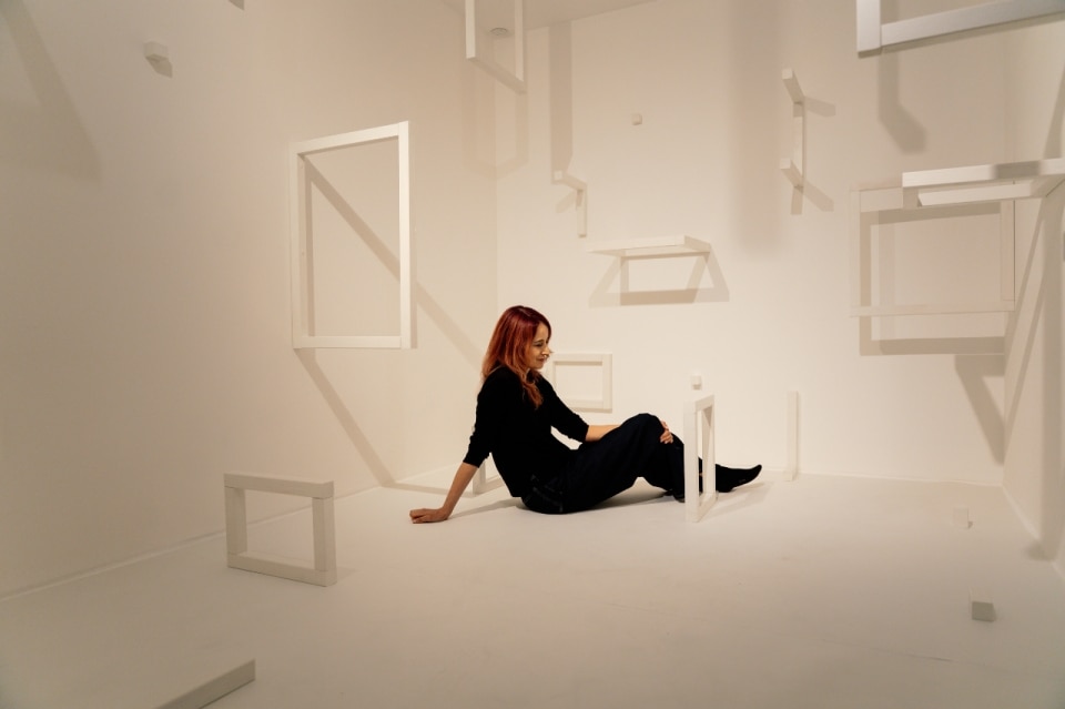 In this sense, she speaks of what she calls “existential geometry.” “For me geometry is a way to see and think and also to interact.” It also includes, she suggests, a certain irony: “I see also humor in geometry. For me geometry perfectly connects our desire to measure existence logically through time and space, but also to surrender to the beauty of contradiction.”
