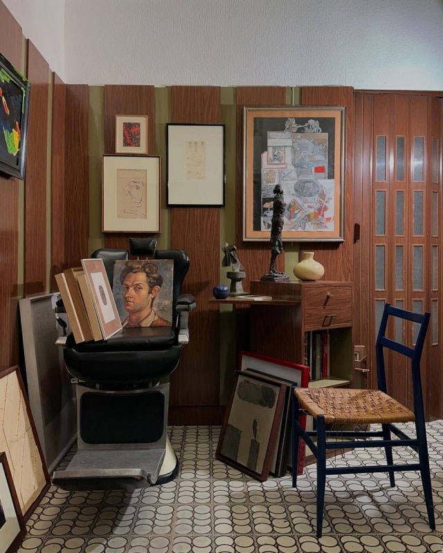 Only on closer inspection do you notice the myriad artworks scattered across the floor, in the corners, on the tables, and hanging on the walls.