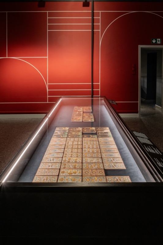 Displayed in a long glass case and illuminated with minimal light to protect the pigments while revealing the shimmering gold backgrounds, these cards mark the culmination of the exhibition’s first historical section—and form the bridge that leads visitors into the contemporary world.