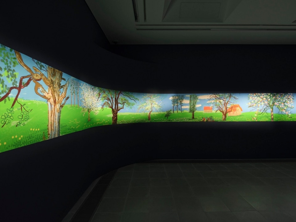 Printed and enlarged well beyond their original scale, Hockney’s Normandy landscapes seem almost to glow against the gallery’s dark blue walls. The effect recalls the much-derided yet hugely popular immersive exhibitions that have recently colonised museums across Europe — prompting the suspicion that these works might feel more at home on the screen of a smartphone.
