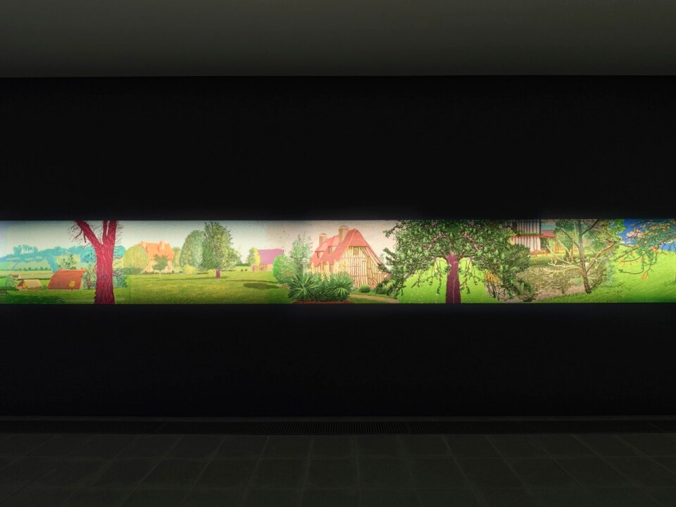As the title suggests, the show presents a pictorial diary of the year the artist spent in Normandy during lockdown, recording the changing landscape and weather from the window of his house — on an iPad. Around a hundred drawings unfold sequentially along the gallery walls on a continuous panel stretching nearly 90 metres. Hockney may outdo Bayeux in length, though perhaps also in repetition. William the Conqueror, one suspects, might feel quietly avenged.