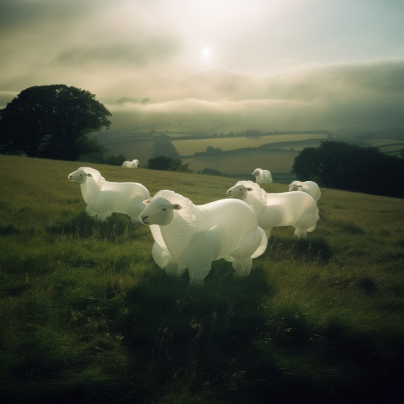 Floating sheep over English moorlands, hyper-technological houses powered by improbable forms of energy, scarecrows walking across fields like figures suspended between folklore and science fiction. In Another England, Toledano constructs a landscape that resembles a memory but operates as a projection. “It’s a deeply nostalgic and personal work,” he says. “I was born in England and I haven’t lived there for thirty years. It’s like looking at a memory through a telescope.”