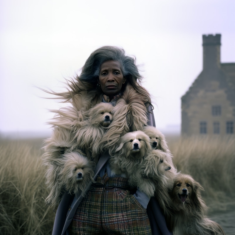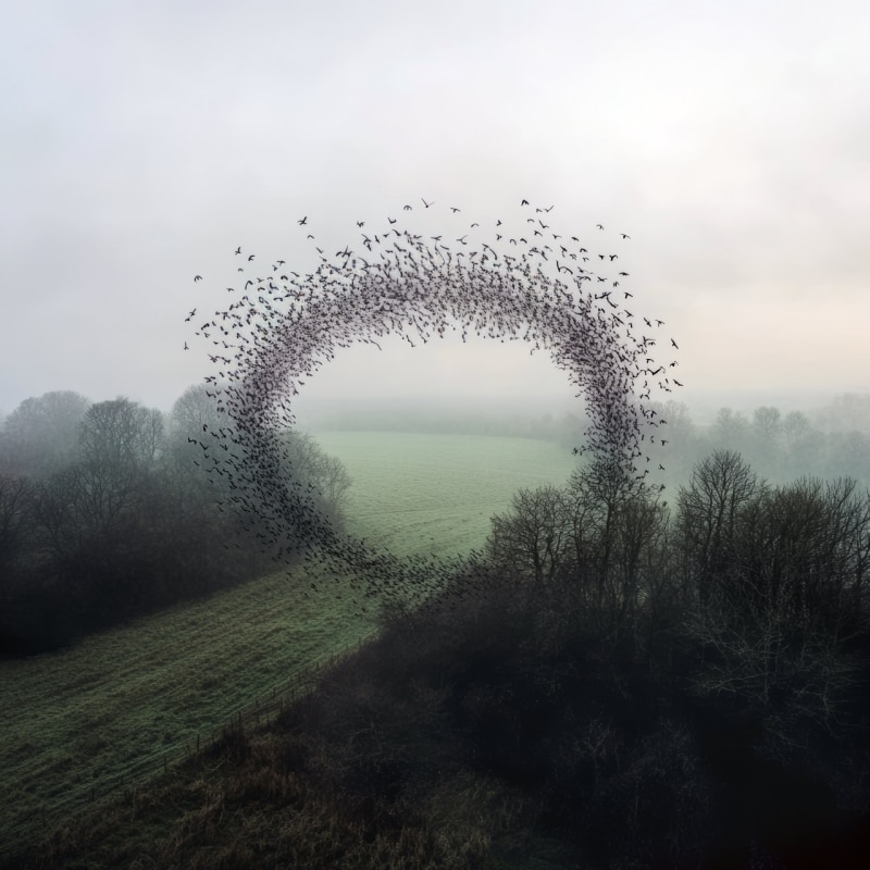 Set in the 1980s—the last time the artist saw those landscapes—the series observes the UK from the perspective of an expatriate, divided between attachment and distance. Beneath the dreamlike surface, however, lie concrete readings of the present: scarecrows echo immigration, imposed “green” technologies suggest new forms of control, and the moors speak of depopulation. Each image is paired with a short text, forming something like a visual novel.