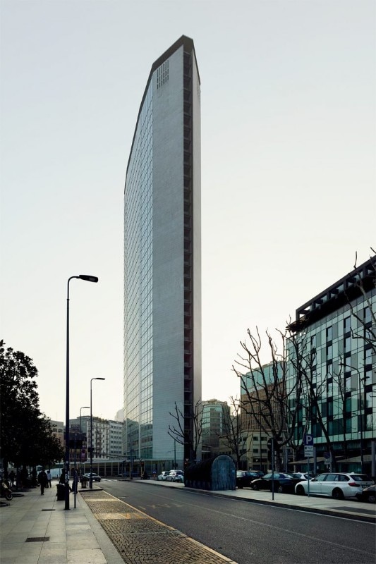 Upon its completion, Ponti lamented that the 127.1-metre-tall building lacked the verticality he was seeking to obtain, saying that the horizontal parapets interrupt the glazed facades’ sleekness, and that the full-length lateral slit is excessively interrupted by the floor slabs of each storey (31 above-ground plus two underground levels).