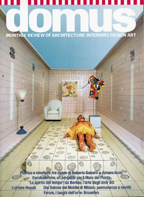 Il nuovo arredatore, interno con caffettiere di Alessi su disegno di Dalisi; dormeuse "La camera chiara di Narciso" di Occhiomagico