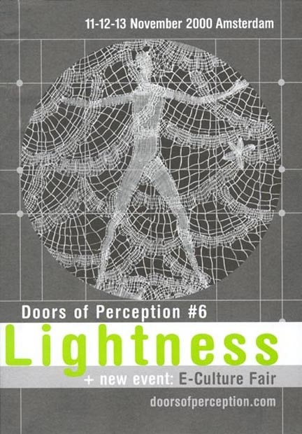 Doors of Perception, a quote by Blake, has been an independent non profit making foundation since January 2000. Finding ways to reduce the flow of energy and material in our daily life is an interesting opportunity for design. The subject of Doors of Perception 6: LIGHTNESS. The topic will develop three lines over three days: Dimensions of lightness, Perceptions of Lightness e Applications of Lightness.