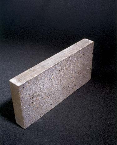 Light Transmitting Concrete (LiTraCon) consists of concrete blocks with a percentage of plastic or glass optical fibres ranging from 3% to 4%. The material becomes translucent without losing its resistance. The diameter of the glass optical fibres varies from 30 to 100 micrometres and the plastic ones from 0.5 to 2.5 mm. For the moment, we are working with 70-micrometre glass optical fibres. The effect produced changes according to the type of fibre, partly for the pattern created but also because plastic ones transmit colours better.