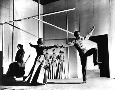 The thirty-year long and extremely fruitful collaboration between Isamu Noguchi (1904-88) and dancer/choreographer Martha Graham began in 1935 with the dance performance Frontier, which contributed to a revolution in contemporary set design. “Transforming the space into a volume to treat as if it were a sculpture” was the idea behind Noguchi’s approach.
