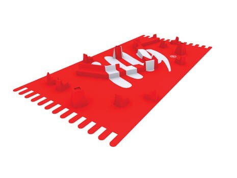 The coffee place is defined by a big red carpet lying on the ground, where the chairs and tables are like natural ripples in the carpet, to be crossed by chance. The act of stopping here and there becomes a spontaneous and informal event.