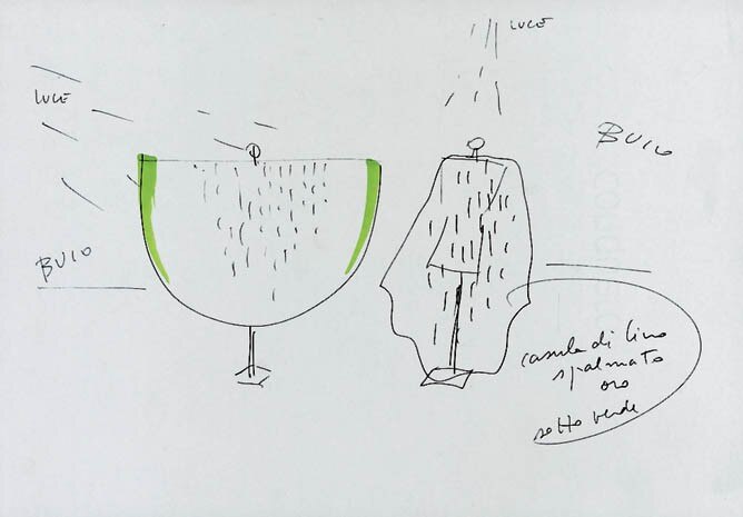 The invitation to rethink the “casula”, a ritual garment worn during religious ceremonies, provided a chance to take to the extreme an approach that I have unconsciously used in all my designs. It involves using the tools of industrial production and in particular operations connected to making textiles as a sort of poetic language.The casula is actually a ritual garment. The name comes from casupola, or capanna (shelter or hut), because the monks, being without a church or a home, travelled wearing only the cloak in which they slept, lived and prayed. The casula helped to protect them.