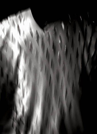 The pattern of cuts was made on the computer at regular intervals. Then I started to take out, move, shorten and lengthen the cuts. The design looks uniform but in reality contains imperceptible variations that give it grace and delicacy.