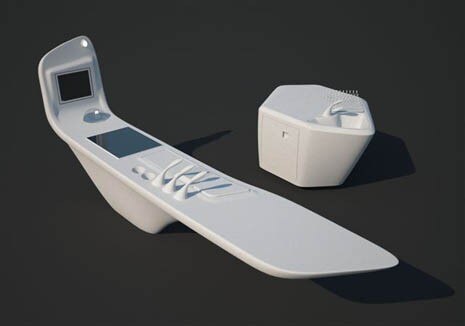 DuPont Corian, in collaboration with Ernestomeda and Scholtès, have set up a futuristic kitchen designed by Zaha Hadid made from solid Corian surfaces.