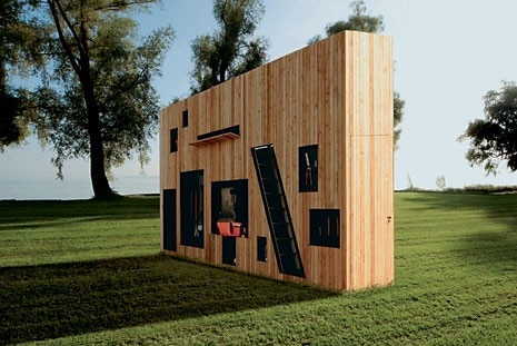 The designer defines it as a garden-project, because Walden is a wooden hut in which garden tools and barbecue equipment can be kept. Walden is, however, something more: a dwelling module immersed in nature. Like a three-dimensional square, Walden accommodates objects and actions. It has special spaces for keeping nests for little birds, and others for rakes and forks, hosepipes and watering cans, pieces of wood… while in the central niche, open on both sides, the occupant can sit as in a cabin. A ladder leads to the upper level, where the occupant can lie down on a mattress and gaze at the stars through the Plexiglas roof, or stretch out beyond the sliding panels and contemplate the panorama. Made by a company specialising in wooden homes, Walden is into its first edition, but the future is open to further developments. The dimensions of the module (650 x 110 x 386 H cm) are calculated to allow the hut to be transported entirely by truck and in one piece.